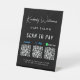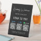 Panneau de tablette pedestal noir personnalisé pour votre entreprise avec les codes QR Venmo, Paypal et CashApp pour les clients à scanner pour les paiements et votre nom ou marque présenté dans un script d'allumage blanc élégant. Téléchargez vos codes QR et ajoutez vos coordonnées en lettres blanches propres.