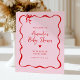 Bienvenue invités dans le style avec cette Affiche de bienvenue de Baby shower rose et rouge Bow Valentine ! Doté d'un cadre à arc dessiné à la main fantaisiste, de coeurs et de teintes rose et rouge, ce charmant panneau donne le ton de votre célébration. Parfait pour un baby shower à thème de Saint-Valentin, il est entièrement personnalisable avec les détails de votre événement pour ajouter une touche personnelle et douce à votre décor.
