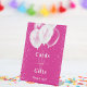 Une carte et un signe de table de cadeaux. Un arrière - plan rose branché avec d'élégants faux étincelles et des ballons blancs. Lettres blanches.