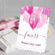 Un signe de table de faveur du parti. Un arrière - plan blanc avec d'élégants faux étincelles et des ballons rose pastel et rose chaud. Lettres roses.