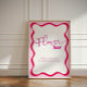 "Flower Bar - faites un bouquet pour vous emmener" signe avec une bordure ondulée rose chaud pour une Fête des mariées moderne et colorée. Conçu avec une touche contemporaine, ce décor ajoute beaucoup de plaisir à votre célébration. Cette collection propose également des invitations assorties, des cartes d'enceinte et d'autres panneaux.