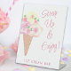 Cette enseigne de douche nuptiale du Ice Cream Bar est décorée de fleurs d'aquarelle et d'un cône de crème glacée. Le texte dit "Scooped Up & Enjoy !" en typographie rose pastel. Aquarelle originale © Michele Davies.