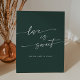 Cet amour boho chic vert émeraude est un signe mariage sucré parfait pour un mariage minimaliste. Le design bohème moderne et moderne de la forêt de chasseurs, sombre et maussade, se compose d'une calligraphie rustique simple au style unique mais classique. Ce panneau est parfait pour une réception de mariage, une fête de fiançailles, un dîner de répétition ou une douche nuptiale.