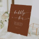 Ce panneau de mariage de bar en terre cuite chic et boho est parfait pour un mariage minimaliste. Le design moderne et bohème orangé terreux présente une calligraphie rustique simple, avec un style unique mais classique.