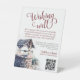 Ce magnifique panneau de voeux est un moyen de bon goût de permettre à vos invités de faire un cadeau d'argent à votre réception de mariage. Le design se compose d'une pierre aquarelle bien décorée avec des roses et des fleurs dans des tons rose et roses poussiéreux. Le texte comprend un titre de script fantaisie lisant "Souhaitons bien" et un poème mignon qui dit : Nous sommes si heureux que vous puissiez nous rejoindre lors de notre journée spéciale, Nous sommes reconnaissants et bénis d'être envoyés en chemin avec des baisers, des voeux et des cadeaux petits et grands, Mais votre présence aujourd'hui est le meilleur cadeau de tous! Il y a de la place pour vos noms et une petite note, ainsi qu'un code QR personnalisable pour diriger les invités vers un site Web où ils peuvent faire une contribution à votre fonds lune de miel ou toute sorte de cadeau en argent.