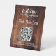 Bois de grange rustique, feuilles aquarelles, panneau de piédestal mariage à code QR. Ajoutez l'URL du code QR et votre texte à personnaliser.