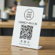 Make it effortless for customers to connect with your brand using this clean, modern "Connect With Us" tabletop pedestal sign. Designed for countertops, checkout areas, and event tables, this sign features a bold QR code layout that instantly directs customers to your website, menu, or booking page, and Facebook, Instagram, and TikTok social media profiles. The minimalist design keeps your branding front and center, with space for your logo at the top and a clear call-to-action that encourages engagement. Perfect for retail stores, cafés, salons, trade shows, pop-ups, and professional events, this = pedestal sign stands upright and remains highly visible without taking up valuable space. Customize it with your brand logo, social media handle, and preferred messaging to create a polished, cohesive look that reinforces your brand at every customer touchpoint.