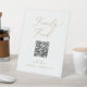 Cette délicate calligraphie or code QR famille de fonds de guéridon signe est parfait pour une douche mariage moderne ou nuptiale. Le design minimaliste romantique présente une belle et élégante typographie de champagne jaune doré sur un arrière - plan blanc au look épuré et simple. Customisez votre code QR et personnalisez avec vos noms.