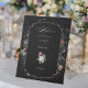 Ce guéridon de bienvenue chic présente une vie morte florale hollandaise du 18ème siècle, avec tulipes blanches, rouges et dorées et fleurs sauvages sur un arrière - plan noir avec étiquette central personnalisé, graphiques floraux complémentaires et calligraphie coutume à flux élégant.
