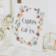 Cartes et cadeaux sur un présentoir de table pour pancarte de mariage. Ce design présente un délicat bouquet de fleurs sauvages peintes à la main et de verdure accompagné d'une combinaison charmante de polices modernes et rustiques. Voir la collection complète pour plus d'articles assortis !
