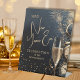 Stylish New Year's Eve party welcome pedestal sign features a champagne glass, clocks, confetti and fireworks on a midnight blue background with your party details in chic lettering. MATCHING items in our collection.