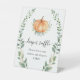 Ce panneau de tombola de baby shower est muni d'un citrouille aquarelle et d'une couronne de feuillage doré à l'automne.