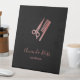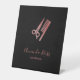 Ajoutez vos détails sur ces ciseaux d'or rose et peigne sur design arrière - plan noir pour votre salon de coiffure.