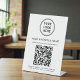 Panneau de piédestal de table moderne pour votre entreprise avec votre code QR pour les clients à analyser pour effectuer un paiement, pour une liste de vos produits, services et prix, pour les rendez-vous, pour s'inscrire, etc. Téléchargez votre logo et votre code QR et ajoutez votre nom d'entreprise, votre numéro de téléphone, votre adresse municipale ou toute autre information en simple typographie. Libérez le potentiel d'augmentation du fiançailles client et comblez en toute transparence le fossé entre les expériences hors ligne et en ligne, permettant à votre entreprise de prospérer à l'ère numérique.