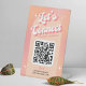 Panneau de table code QR rétro avec fond dégradé pêche pastel et rose et polices nostalgiques. Ce panneau de piédestal de réseaux sociaux moderne comprend un espace pour votre code QR scannable et vos coordonnées. Le design groovy et les couleurs vives, sont sûrs de se démarquer dans votre magasin, salon ou bureau. Faites facilement la promotion de votre site web, de vos comptes de réseaux sociaux tels que instagram, tiktok, facebook avec ce panneau de code QR.