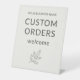 Let customers know you welcome custom orders with this clean, neutral pedestal sign. Featuring minimalist text and a soft botanical touch, it's perfect for craft fairs, vendor markets, and small business displays that value simplicity and personalization.