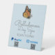 Panneau de piédestal de table personnalisable avec graphique de monarque orange sur fond bleu clair. Ajoutez votre propre code QR pour Paypal et Venmo. Parfait pour les spas de jour, les studios de bien-être et autres entreprises liées à la beauté.
