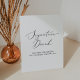 Cette délicate signature calligraphie noire signe de piédestal est parfait pour un mariage moderne. Le design minimaliste romantique présente une belle et élégante typographie noire sur un arrière - plan blanc au look épuré et sobre.