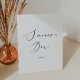 Ce délicat panneau de piédestal de mariage de calligraphie noire est parfait pour un mariage moderne. Le design minimaliste romantique présente une belle et élégante typographie noire sur un arrière - plan blanc au look épuré et sobre.