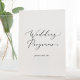 Cette délicate calligraphie noire programme de mariage signal piédestal est parfait pour un mariage moderne. Le design minimaliste romantique présente une belle et élégante typographie noire sur un arrière - plan blanc au look épuré et sobre.