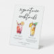 Cette enseigne élégante à cocktails de menu à guéridon est dotée d'une typographie noire personnalisée au-dessus de 2 boissons et de leurs ingrédients pour votre bar mariage. Un joli temple Sirty Shirley et un dessin Piña Colada ajoutent une touche cool à votre menu du bar. Complétez avec les noms du couple et la date de leur réception.