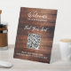 Elégant script manuscrit QR code rustique grange bois mariage siège du panneau de piédestal. Ajoutez l'URL du code QR et votre texte à personnaliser.