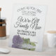 Ce magnifique guéridon autoportant fera savoir à vos invités qu'il n'y a pas de plan d'assise pour qu'ils puissent s'asseoir où bon leur semble. Il présente un design simple mais élégant, avec un seul rose de couleur violet foncé à longue tige réfléchissant dans une piscine d'eau. Texte : Venez comme vous êtes, restez aussi longtemps que vous le pouvez, Nous sommes la famille maintenant, donc il n'y a pas de plan de place. Un moyen parfait d'invitation vos invités à se mélanger et à se rencontrer.