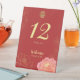 Un élégant mariage chinois de pivoine signe de piédestal numéro de table avec une fleur classique or et rose de pivoine avec un double caractère xi.