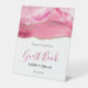 Élégant Pink & Gold Agate Pierre Mariage Pierres signe de piédestal.