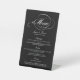 Ce menu mariage moderne et très tendance conviendra parfaitement à vos convives dans le cadre de votre table mariage. Le design est composé d'une typographie à la mode, d'une formulation blanche sur un arrière - plan noir chic, parfaite pour tous les bides et mariés le jour de leur mariage.