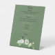 Elégant panneau de guéridon de menu de mariage pour votre journée parfaite! Design vert et floral.