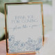 Ce Merci pour l'enseigne à venir avec élégante chinoiserie bleue est décoré de fleurs d'aquarelle Toile de Jouy. Il est parfait pour votre douche à thème "Quelque chose de bleu avant moi". Invitation correspondante, cartes de boîtier et panneaux sont également disponibles dans cette collection.