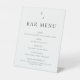 Panneau de menu minimaliste moderne pour les boissons mariages avec design de typographie simple et initiales monogrammes.