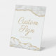 This is a Elegant White Gold Agate Custom Text Party Pedestal Sign!