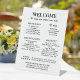 Symbole d'accueil personnalisé et élégant pour une location, Airbnb, appartement, gîte de vacances, cabine, ou b&b. Modifiez le texte pour ajouter tout texte personnalisé que vous souhaitez inclure pour les informations d'arrivée, les règles de l'hôtel, le wifi, le check-out et des informations supplémentaires pour vos invités. Comprend le nom du lieu, l'adresse, le numéro de contact et le courriel en bas.