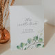 Cette élégante bougie verdoyante brûle panneau commémoratif mariage est parfait pour un mariage simple. L'élégant design moderne présente un agencement botanique naturel d'eucalyptus, de feuilles et de plantes avec un accent subtil de lave-linge vert menthe.