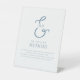 Simple, moderne, simple, blanc et bleu poussiéreux panneau de la table de mariage mémorial personnalisé avec élégante ampersand - monogramme avec initiales de mariée et mariée. En mémoire d'amour.