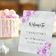 Signe De Table Fête d'anniversaire argent rose violet fleurs accu