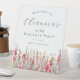 Elégante aquarelle d'été rose gladiolus fleurs créent une belle bordure florale au bas de cette fête d'anniversaire bienvenue panneau de piédestal de table. Les fleurs de gladiolus sont la fleur de naissance de juillet qui signifie force et amour. Une combinaison de polices à la mode lui confère une esthétique moderne. Tout le texte est modifiable.