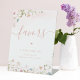 Elégante délicate aquarelle fleur sauvage et élégant script moderne, palettes pastel de rose pâle doux, blanc, beige, bleu poussiéreux, verdure botanique, simple et romantique. Grand mariage faveurs s'il vous plaît prendre une pancarte pour mariage de jardin botanique rustique au printemps et l'été. Voir toutes les pièces correspondantes dans la collection.