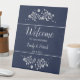 Elégant et tendance, simple enseigne de piédestal à fleurs blanches et mariages.