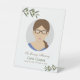 Un signe de table funéraire simple, sobre et minimaliste avec un cadre photo circulaire et des branches d’olivier dans le style aquarelle pour le mémorial, la commémoration ou la veillée funèbre.