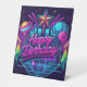 Ce design se compose d'un arrière - plan néon aux accents lumineux et à la typographie "Happy Birthday". Il est parfait pour une fête sur le thème de l'espace ou une fête qui sort de ce monde. L'illustration de la galaxie ajoutera une touche de magie et d'émerveillement à l'invitation, ce qui le rendra adapté à une célébration cosmique. L'arrière - plan néon crée un sentiment d'excitation et d'énergie, tandis que les accents lumineux dans le noir ajoutent une couche supplémentaire de fantaisie. Avec ce design, vous pouvez créer une invitation qui est aussi surmontable que hors du monde.