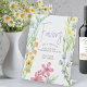 Panneau de table fleur sauvage Favors - autonome et parfait pour votre douche ou baby shower nuptiale. Ce joli design fleur sauvage aquarelle a des positions de fleurs sauvages en rose, lilas, bleu, orange et jaune. Favors est écrit à la main avec une élégance décontractée suivie de "L'amour est en fleur" et votre libellé personnalisé et message de remerciement. Délicat, féminin et tendance.
