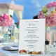Panneau de table du menu mariage. Une jolie bordure en coquillages au fond de la plaque permanente pour les tables de réception. À la place d'un menu pour chaque paramètre d'endroit, il suffit de mettre un panneau de menu dans chaque table. Ajoutez les noms du couple en haut avec le titre "menu". Liste des entrées, entrées, côtés, desserts, sous forme de paragraphe. Utilisez ou supprimez des espaces selon les besoins pour bien adapter le texte. Choisissez une taille de signe préférée. Correspond à la collection de mariages Living Seas.