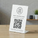 Panneau de piédestal de table moderne et simple pour votre entreprise. Téléchargez votre logo et le code QR de votre site web pour que les clients puissent scanner pour obtenir une liste de vos produits, services, prix, etc. Ajoutez votre nom d'entreprise, numéro de téléphone, site web ou d'autres informations en typographie simple. Ajoutez vos identifiants instagram et facebook pour que les clients puissent vous suivre en ligne.