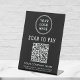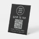 Panneau de piédestal moderne noir pour votre entreprise avec un code QR pour les clients à scanner pour les paiements, vous permettant de recevoir des paiements à tout moment, n'importe où. Téléchargez votre logo et ajoutez votre nom d'entreprise, votre numéro de téléphone et votre adresse municipale ou toute autre information dans une simple typographie blanche. Entrez l'adresse de votre site de paiement pour créer automatiquement un code QR numérisable.