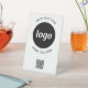 Logo simple avec design de texte personnalisé pour favoriser la fidélité de la marque et promouvoir votre petite entreprise. Remplacez le logo et le code QR par le vôtre, et modifiez ou supprimez le texte supérieur et inférieur pour customiser. Parfait pour les fins promotionnelles.