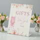 Love in Bloom themed gifts table pedestal sign designed for bridal shower celebrations. Created to guide guests with a romantic, floral look that coordinates beautifully with elegant shower decor. Ideal for bridal showers, engagement parties, and wedding shower gift tables. Editable text. Clean print-ready layout.