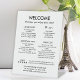 Panneau d'accueil moderne et personnalisé pour une location, Airbnb, appartement, gîte de vacances, cabine, ou b&b. Modifiez le texte pour ajouter tout texte personnalisé que vous souhaitez inclure pour les informations d'arrivée, les règles de l'hôtel, le wifi, le check-out et des informations supplémentaires pour vos invités. Comprend le nom du lieu, l'adresse, le numéro de contact et le courriel en bas.